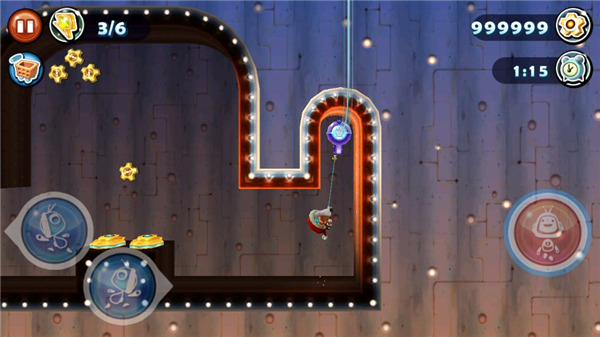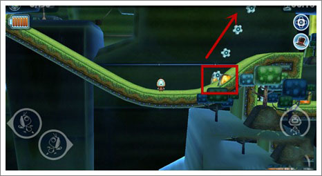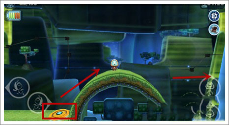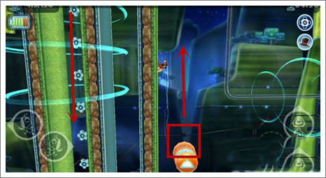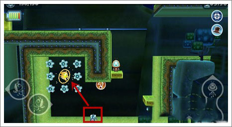 6、这里可以利用右下角的道具吸附在上面,转动,连续前进三个左右,跳跃到第二层,还是如此方法吃掉齿轮。