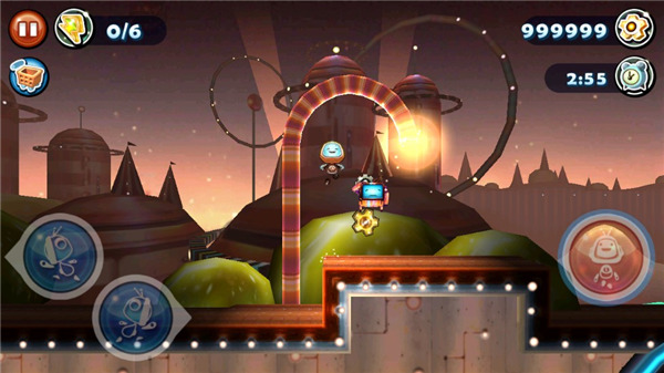 另外,科迪的天空2游戏的主角是一只造型非常可爱的机器人科迪。游戏整体感觉就像是一次奇妙的太机器城大冒险,系统没有如跑酷游戏一样强制玩家一直向前无法停下,玩家更像是在玩一款传统的平台动作游戏,有起点,有终点。游戏一共三个大关卡,大关卡下又有各自不同的小关卡,关卡的平台结构是随机的,所以每次玩都有不同的感觉。游戏中玩家需要控制小主角科迪在各个小关卡中收集齿轮、能量电池等等道具。最终获得游戏的胜利!