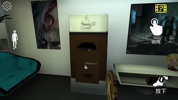 6、接着我们走楼梯来到一楼,可以找到咖啡机,点击右上角的启用按钮来【获取咖啡】。