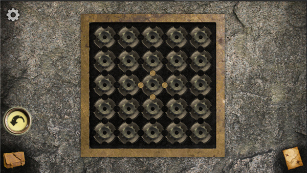 7、进入游戏场景,点击转到齿轮将4个黄色球全部弄在一个齿轮上,如图;