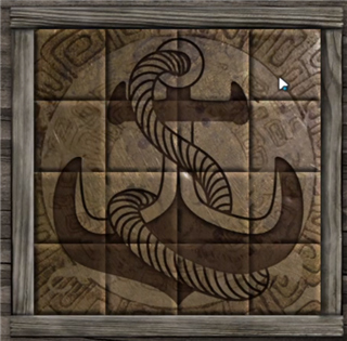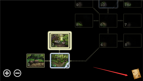 8、返回场景图中,移动屏幕左边可以看见两个宝箱,点击第一个将拼图好,如下图;