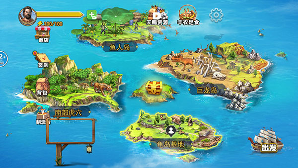 1、进入游戏,选择一个岛屿地图,点击后,人物将乘船出发;