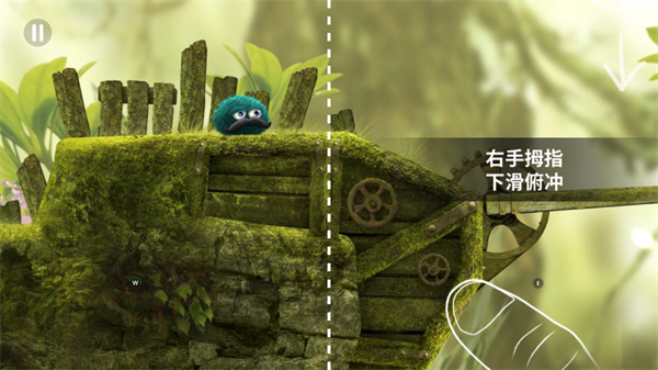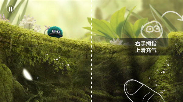 3、游戏的操作模式很简单,左手滑动屏幕控制毛团的移动方向,右手轻触屏幕使其跳动。长按可以让毛团浮起。