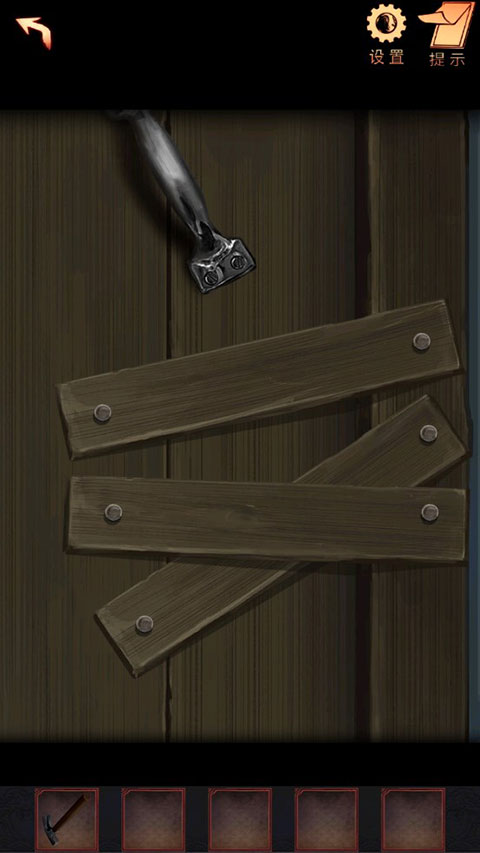 5、对着门木板上的钉子使用道具羊角锤,打开房门。