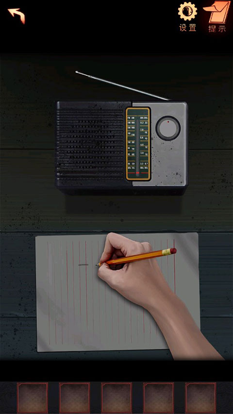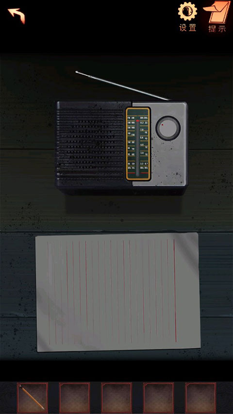 10、点击写字台上的收音机,使用道具电池。调整收音机的调频,点击旋钮将指针调到最下方的红线区域。