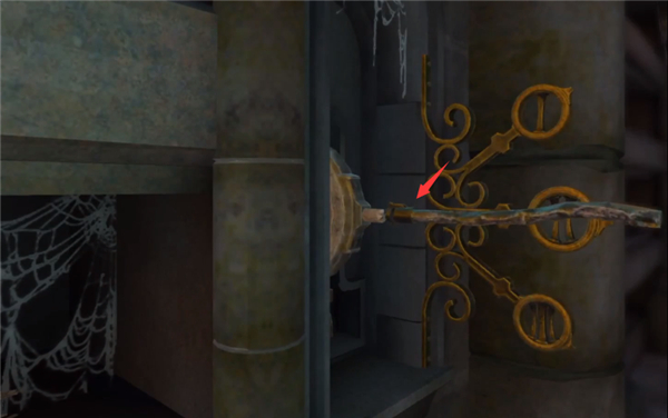 8、向上拖动机关,左侧绳子落下,点击左侧绳子。