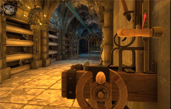 10、向右摇动机关上的摇柄直到机关卡死,再向上拖动把手。