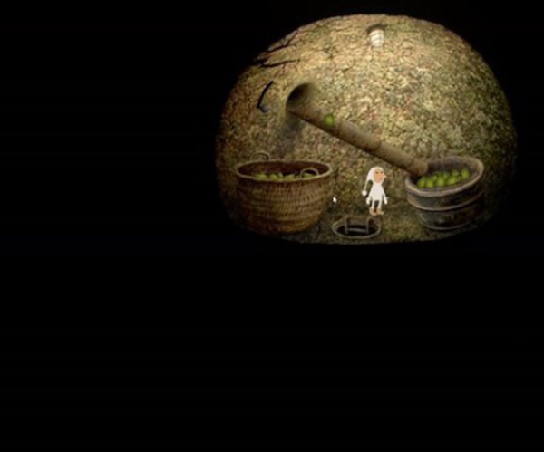 9、点左边墙上的开关,再将右筐里的梨全部拿到左筐,再点右筐进入下一场景。