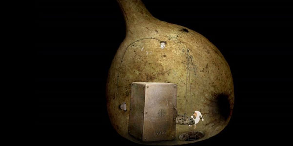 13、点房门进屋。点右边的柜子,再点咖啡(COFF),点水喉开关。将壶放到屋子二楼的炉子上,出气泡后点房左挂铃的绳子,等睡觉的人(的士司机)张大嘴时将壶里的水倒入,人会醒。点司机右边充气机中间瘪了的气球,点房子左边的山顶。进入下一场景。