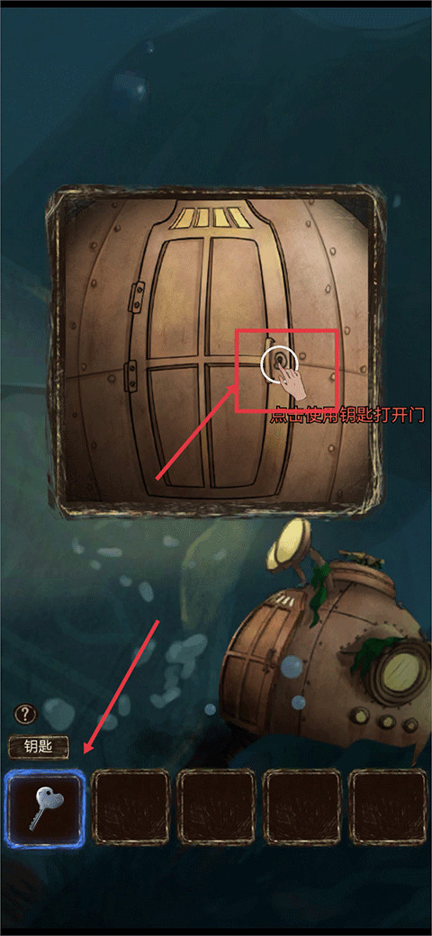 2、获得物品线索后,点击线索并使用它破解谜题,如下图找到了一把钥匙,可以用它来打开门