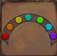 5、根据颜料盒的顺序,将【绿盖子】、【蓝盖子】、【黄盖子】放入空缺处并且调整位置,打开柜子取得【画笔】。