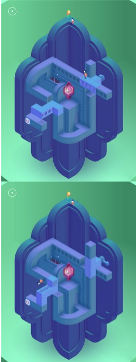 圆形的滑动,这种机关在游戏中很多,变化也多种多样,最大的特色就在于,如果你在某个视角看的路线已经断了,但是如果你 旋转下视角,也许路线已经是完整的了,那么艾达也可以行走的。