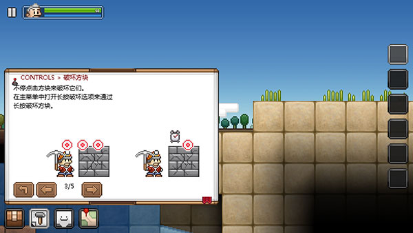 3、不停点击方块来破坏它们,在主菜单中打开长按破坏选项来通过长按破坏方块。