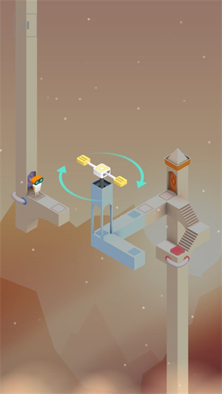 游戏在操作上采用了全屏触控的方式,玩家们点击屏幕中的菱形地面即可让主角向着点击的地方前行,当然若路中间有沟壑或者障碍物则无法通过,除此之外一些道路还可以通过滑动或者旋转来控制路面移动,这是挑战中最基础的机关所在,玩家们可以通过尝试各种位置的机关来寻找到正确的道路。本作的操作方法算是比较简单的,只是在挑战的过程中往往需要多次重复的使用某种操作来控制机关,让玩家们拥有极强的动手体验过程。