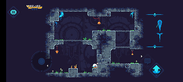 1、像素画风,动感配乐采用了鲜亮明快的像素画风,操纵主角在狭小地牢里闪转腾挪,伴随着Joonas Turner作曲的动感BGM,尽享类银河恶魔城的狂野粗豪!