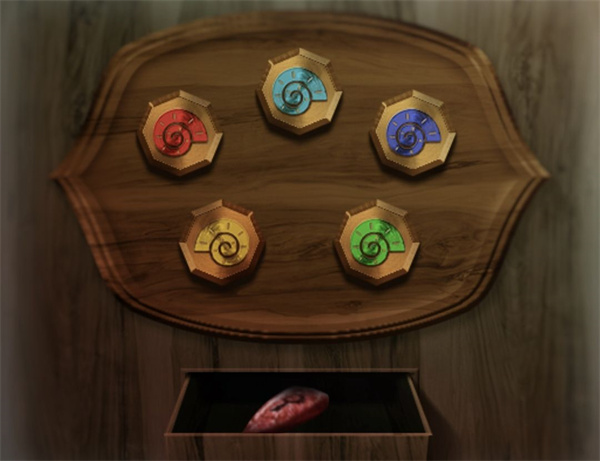 根据贝壳左旋右旋拧一下餐厅内的贝壳,得到的红色钥匙放大门上