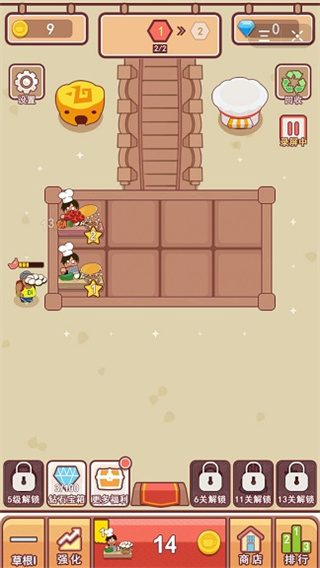 1、合成更高等级的厨师,对应这些厨师的攻击力与频率都能得到提升,以此更好地完成战斗2、关卡超级多,难度变得更大,也就是你面对的食客饭量以及数目会变得更多,移动速度更快