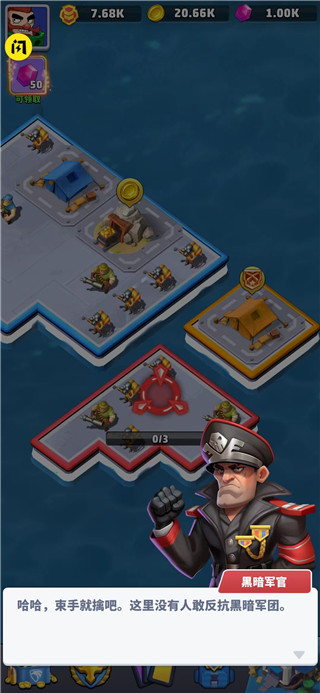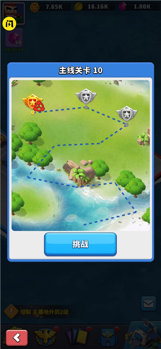 在你美丽的岛屿王国的另一端,还有一些邪恶的黑暗卫队在扰乱部落的生活,指挥我们的军队,打败这些入侵者,BOSS哈晏莫的司令部分散在地图的各个角落,击败他们能获得十分丰厚的资源、水晶、勋章奖励。