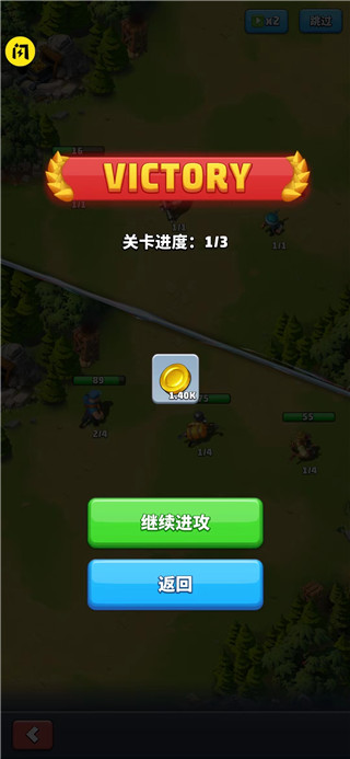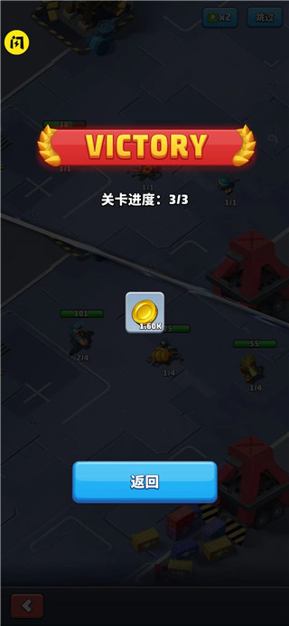 3、玩家消灭敌人就可以获得游戏的胜利了,这里我们点击跳过;