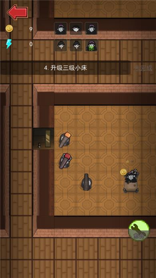1、升级炮塔提高自己的战力,开启自己的冒险战斗吧。不断消灭邪灵,保护宿舍里的人类。