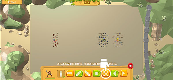 5、在己方阵营中排兵布阵,每回合自动出兵,兵种自动进行战斗,快来挑战吧。