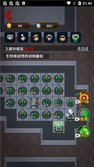 4、在后期挑战过程中,金币和能量一样重要,因为升级塔防、门和床都需要金币。