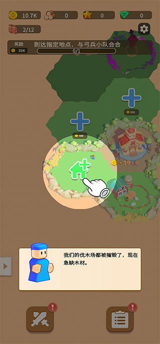 2、作战是需要各种材料的,先创造一个伐木场吧;