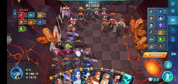 共12人,低配的话就用两个守卫羁绊作为前排,凑齐六施法的主核和外围高血量高护甲的“护城河”就行。
