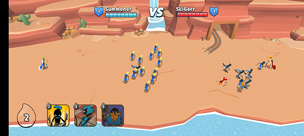 1、游戏中玩家可以亲临激烈刺激的战场,指挥你的火柴人勇士进行作战,而且游戏中有着各种火柴人士兵可供训练。2、游戏中玩家需要一边需要组建自己的火柴人战队,同时还必须指导他们参加战争,只有灵活的操作才能顺利击败各种敌人哟。