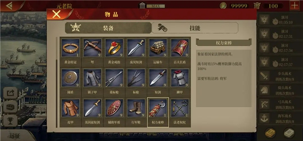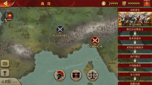2、军事地图:很强且超值的装备前期可看情况购买装备于腿短将领如斯巴达克斯维钦托利等
