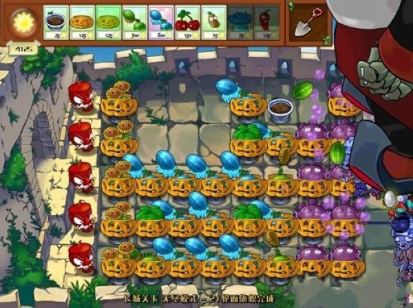2、两个冰菇和两个辣椒的方式属于比较主动的攻打,BOSS会较快被解决,两个盆或两个南瓜可以在你的植物被摧毁后迅速重造,看个人所需了。