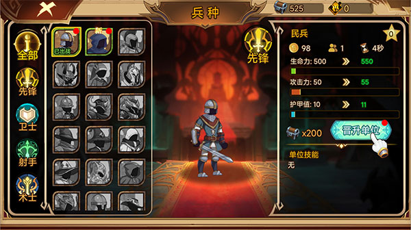 8、使用获得的奖励对每一个士兵进行晋升,可以大大提高他们的战斗能力;