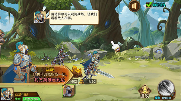 1、多样化的英雄和兵种配置;2、精彩的剧情设定,玩法创新;