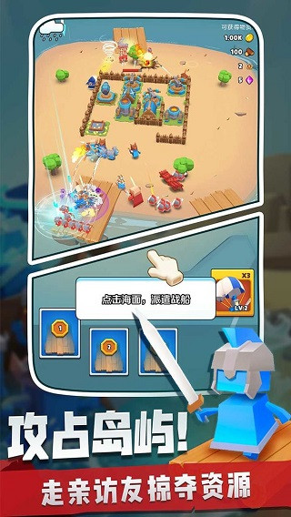 1、争夺宝贵资源的控制权,经营家园,升级部队,抵抗敌人的攻击。2、合理分配各种资源,充分利用各种战利品来壮大你的岛屿。