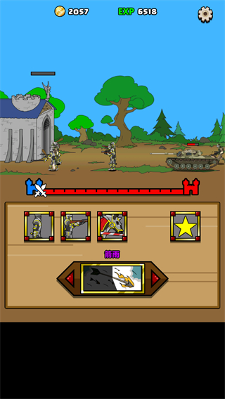 1、玩家在这里需要不断指挥你的军队招兵买马,让你的角色以及武器不断升级强化,直至最后成功摧毁敌人的堡垒,尽情享受其中的激情闯关之旅。