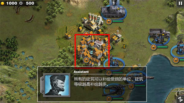 2、在游戏中所有的建筑物都可以补给给受损的单位,当然建筑的等级越高补给也就越多;