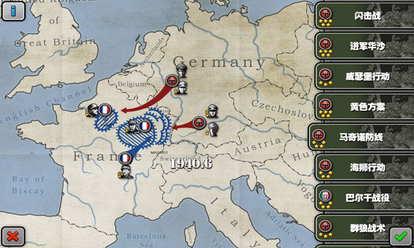 22、在西线与北非大部分战役中,部队不要与敌军太过纠缠,运用部队行动后可再次攻击的特点,尽量攻击挡路的,主要输出针对据点,但在东线与南极中,此方法不适用。