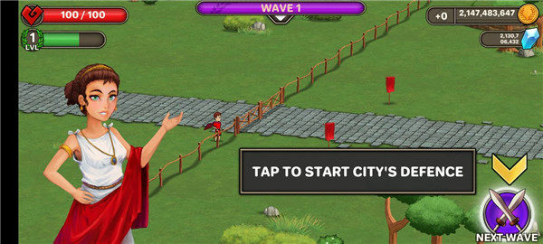 1、进入游戏,跟随新手教程点击右下角下一波,击退第一波敌人