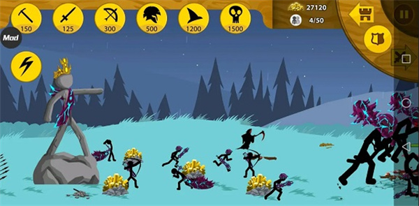 3、带领火柴人军队开采黄金和资源,学习战斗技能,去对抗敌人,获取极致爽快的战斗感;
