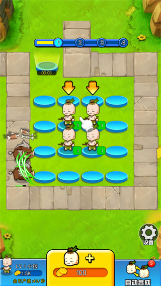 4、玩家还可以点击游戏右下角的按钮来进行英雄的自动合成,每次会持续3分钟;
