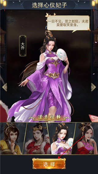 3、在游戏中还可以选择许多三国美女作为妻子哦。