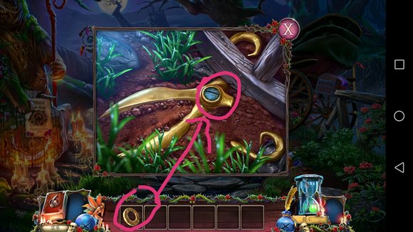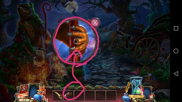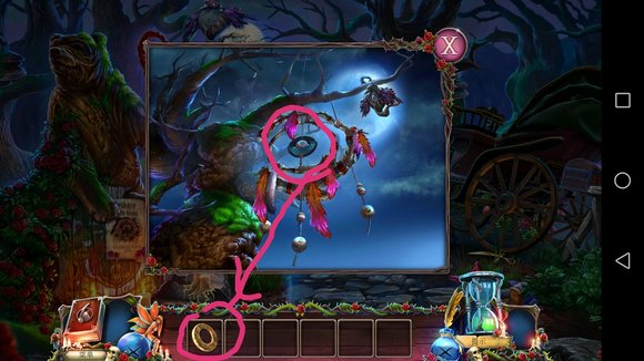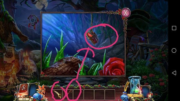 8、娃娃掉树下桩子上,一直点得到铁丝,铁丝打开刚才的箱子,完成小游戏得到项链。