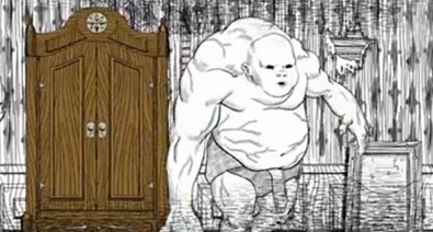 1、玩家来到第四梦后,进入地下室,穿过很多洋娃娃的房间,会遇到一个巨大的巨婴怪物,我们需要立马躲进旁边的衣柜中