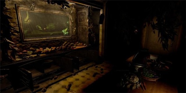 然后主角靠近壁炉前的人物画,注视着它,画作就会融化,而主角身后的家具全都会乱作一团。