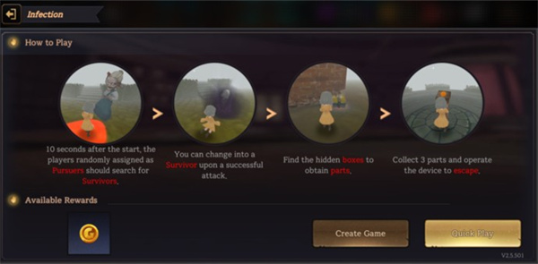 2、感染模式-PvP个人配对(2个老奶奶/寻求者和6个桃乐丝/躲藏者)