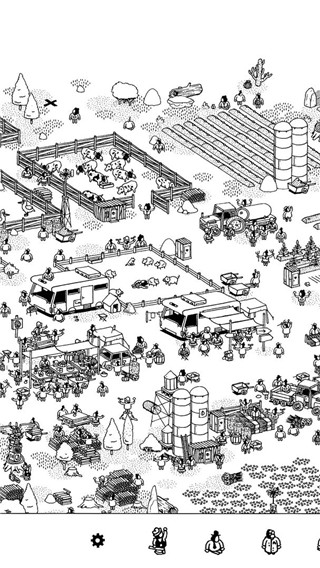 隐藏的家伙中文版是一款黑白简约风格的益智解谜游戏,采用非常简单的点触设计,玩家只需用点击场景中的元素找到需要寻找的物体,初始关卡比较简单,场景相对较小需要寻找的元素也不多,上手之后可以很快找到。游戏目前共有五个场景,分别是“森林”、“旱地”、“城市”、“雪地”、“工厂”,每个场景之中又分成多个关卡,这些关卡的难度各有不同,除这五个场景外还有一个“海滩”场景没有上线。寻找隐藏物的过程十分考验玩家的耐心和眼力,关卡包含简单或者困难的模式,你需要尽快的找到你的目标物,耐心注意周围的景色,从图片上找出各种不同的隐藏任务,卷起帐篷,砍掉树丛,开关大门,甚至还可以戳戳鳄鱼,看看会发生什么奇妙的反应。此外,独特的美术,魔性的配音,有趣的交互反馈,令人眼花缭乱的巨大地图,让这款游戏充满探索的乐趣。