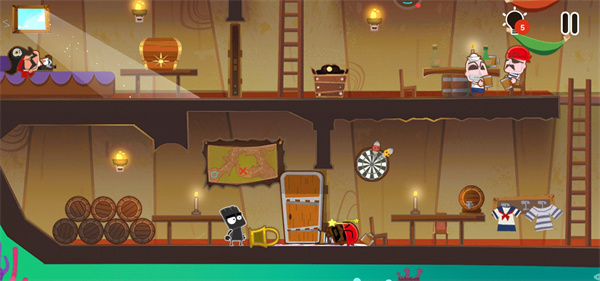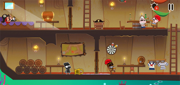 7、解决了第一个海盗以后,进入房间换上海盗服,通过梯子上楼准备解决剩余的海盗;