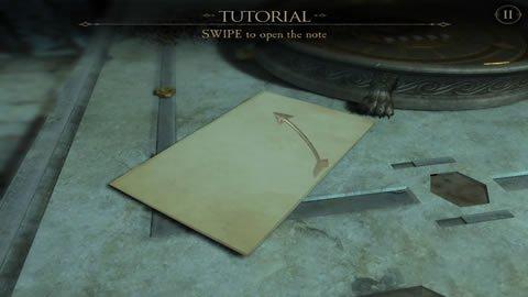 6、这时的目镜还没有镜片,所以不必逗留,推出信件的场景,很多玩家抱怨不知道如何退出场景,只需要用两只手指头相对的捏一下即可(类似缩小照片)。