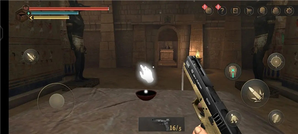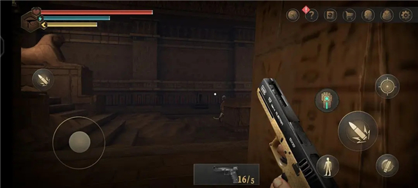 1、游戏开局,将对游戏的背景进行简单描述,当玩家进入金字塔后,真正的玩法正式开始,滑动屏幕观察四周。