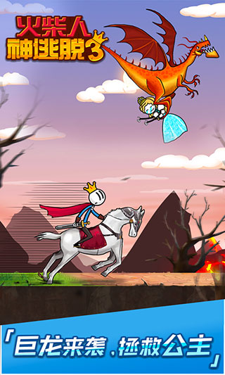 火柴人神逃脱3是一款充分延续火柴人神逃脱系列有趣又好玩元素的全新休闲闯关游戏,以火柴人王子拯救公主这样可歌可泣的爱情故事为背景,开展了一段全新的冒险拯救之旅。经典火柴人形象,诙谐轻松的二次元画风,人物造型简单又富有线条美感,操作界面更加友好,剧情诙谐有趣,烧脑关卡千奇百怪,令人在捧腹大笑中开启结局。游戏在玩法上,采用了经典的闯关玩法,同时又在经典之上,进行了改进与创新,添加了大量的童话元素与解谜元素,公主可不是那么好拯救的。火柴人神逃脱3操作简单易上手,作为火柴人王子你必须充分发挥自己的战斗力,打开脑洞发散思维来解开每一关的陷进、躲避守卫攻击并将其全部干掉,获取钥匙解锁下一关卡,直至抵达99层高塔从恶龙手上救出公主为止。另外,与其他版本不一样的是,游戏优化了音效,轻松的音乐氛围中略带一丝丝紧张的气氛,让你真正的身历其境,体验一把拯救公主的快感,所以大家还在等什么,感兴趣的小伙伴赶快来下载体验吧。